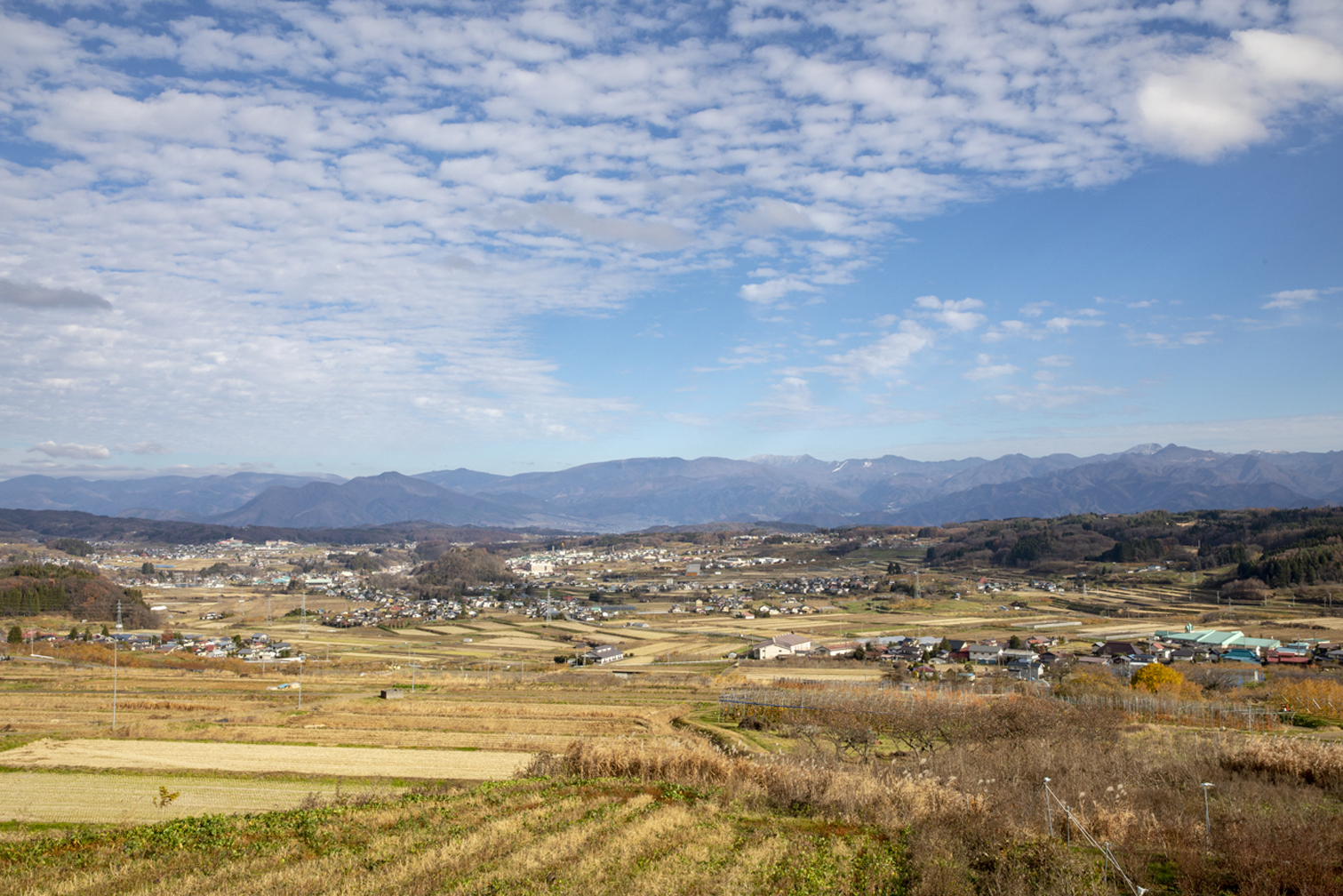 天狗伝説が残る霊峰”飯綱山”の麓に私達のりんご畑があります。雪深い飯綱山の冷たく澄んだ雪解け水は春には大門川という川になります。大門川の水は飲料水としてもとても美味しい水で、その水が畑を潤し、りんごを育てています。