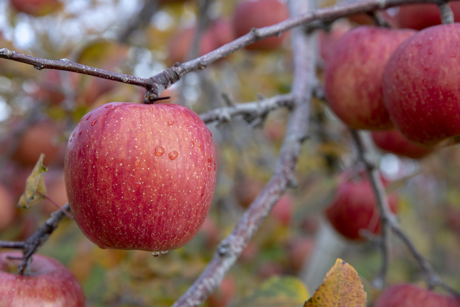 高地の強い日差しと厳しい冷え込みが、酸味に負けない濃厚な甘さと独特の硬い食感を生み出しています。 たっぷりの蜜と華やかな香りも特徴の一つです。スッキリとしてバクバク食べちゃうおいしいりんごです。